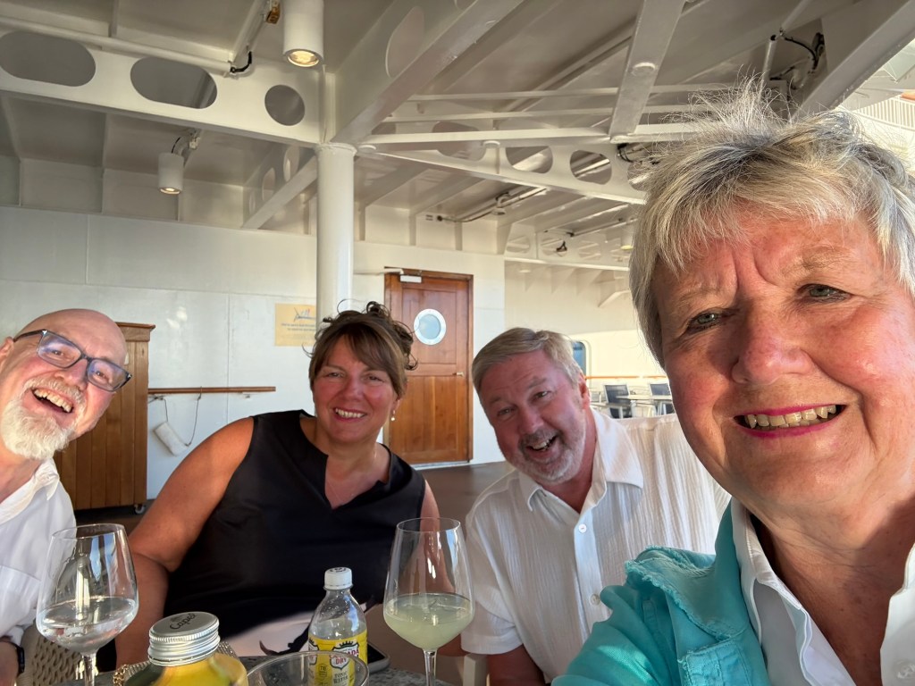 We had a great meal and lots of laughter. They have been a very special part of our holiday and we are very fond of them. It was a very late night for us – back in our cabin at 10.15! Quelle horreur! I am going to be in pieces in the morning for the three part harmony and Bridge!