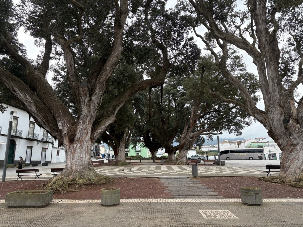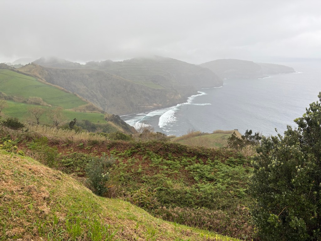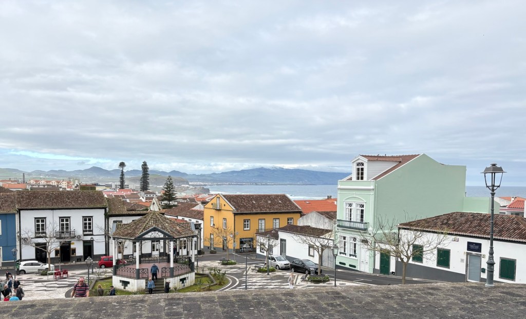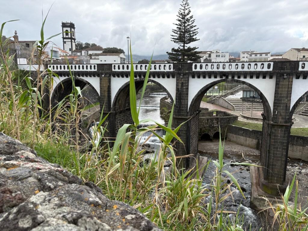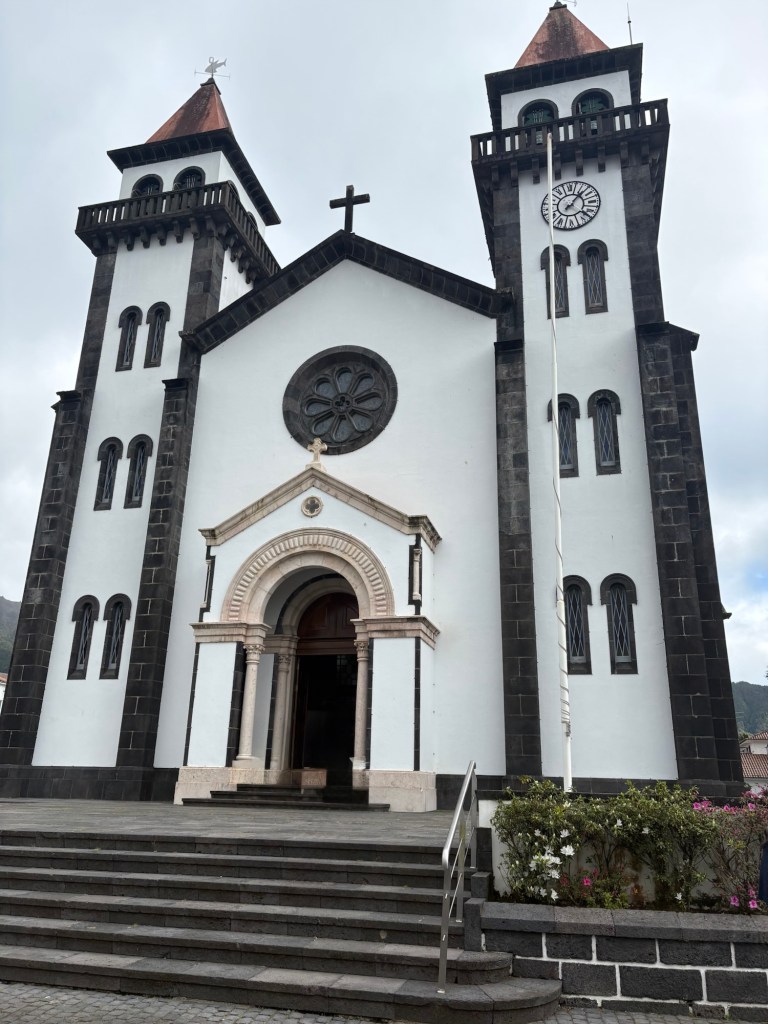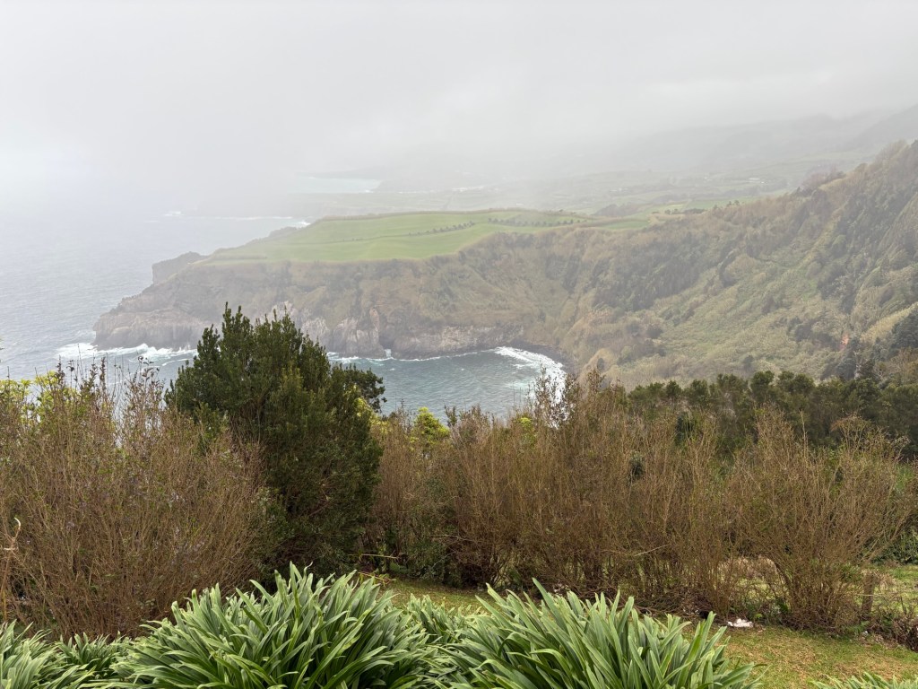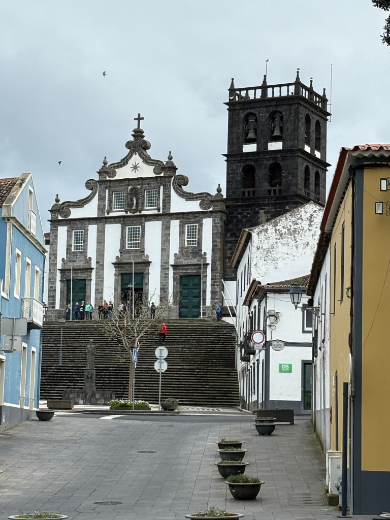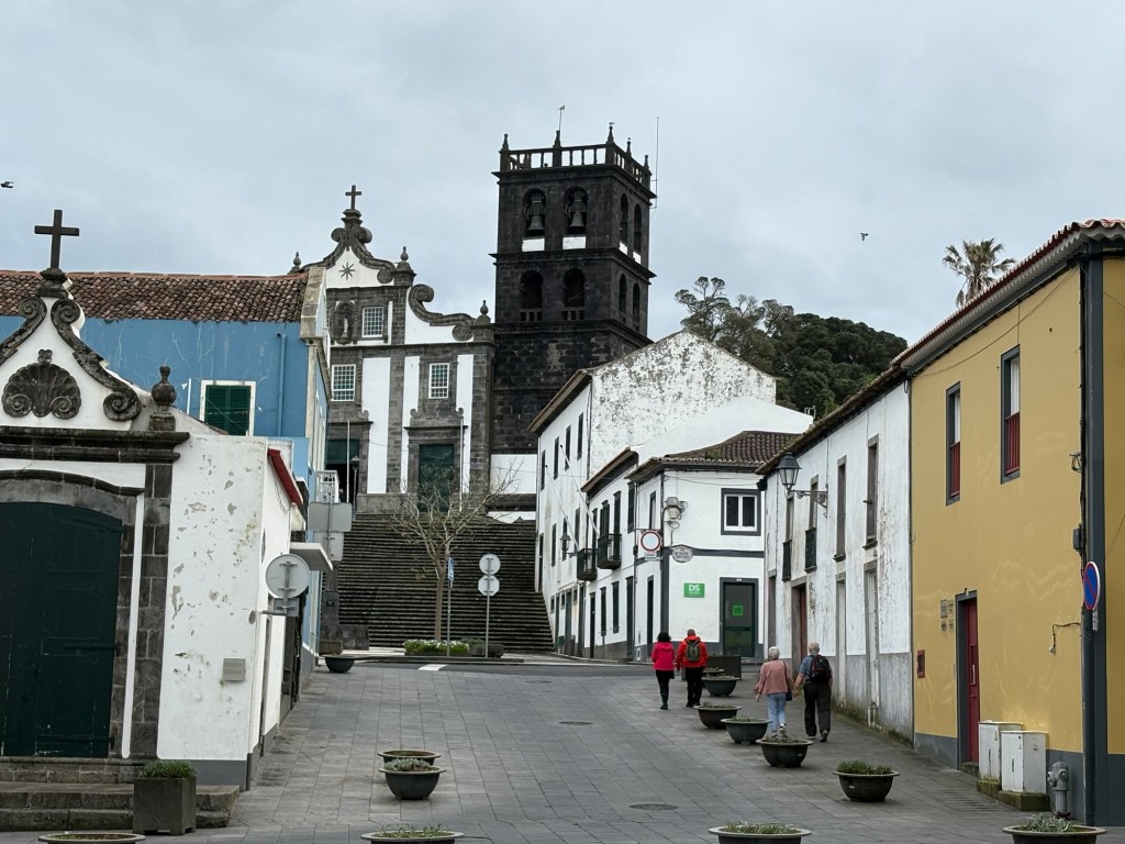 We left Ponta Delgado where we were moored to travel to the north of the Sao Miguel island, one of the 9 islands that make up the Azores. It was a pretty grey day. We headed first to Ribeiro Grande. This is a small industrial town on the coast. The Azores are Portuguese volcanic islands that lie 870 miles west of Lisbon. There is a lot of evidence of the volcanic rock along the sea shore and in the older buildings in town. We left the coach and took a wander around the town. The island is very religious with 98% of the population Catholic as evidenced by the religious plaques over many of the doors of the small town houses we passed.
