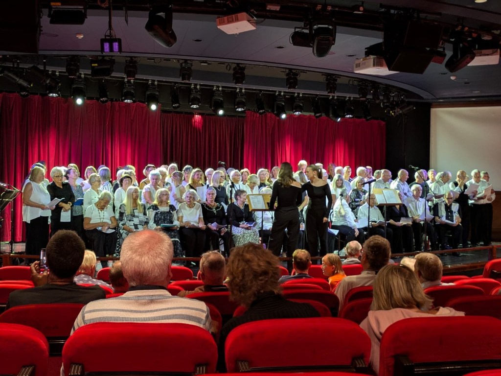 After lunch, the on board choir made up of cruising guests had their concert, so I thought the least I could do was go and support them. They had a cast of thousands!! I had asked for a photograph but to date it has not materialised….but now it has! Thank you Sian!
