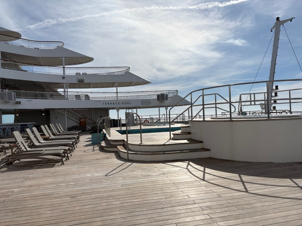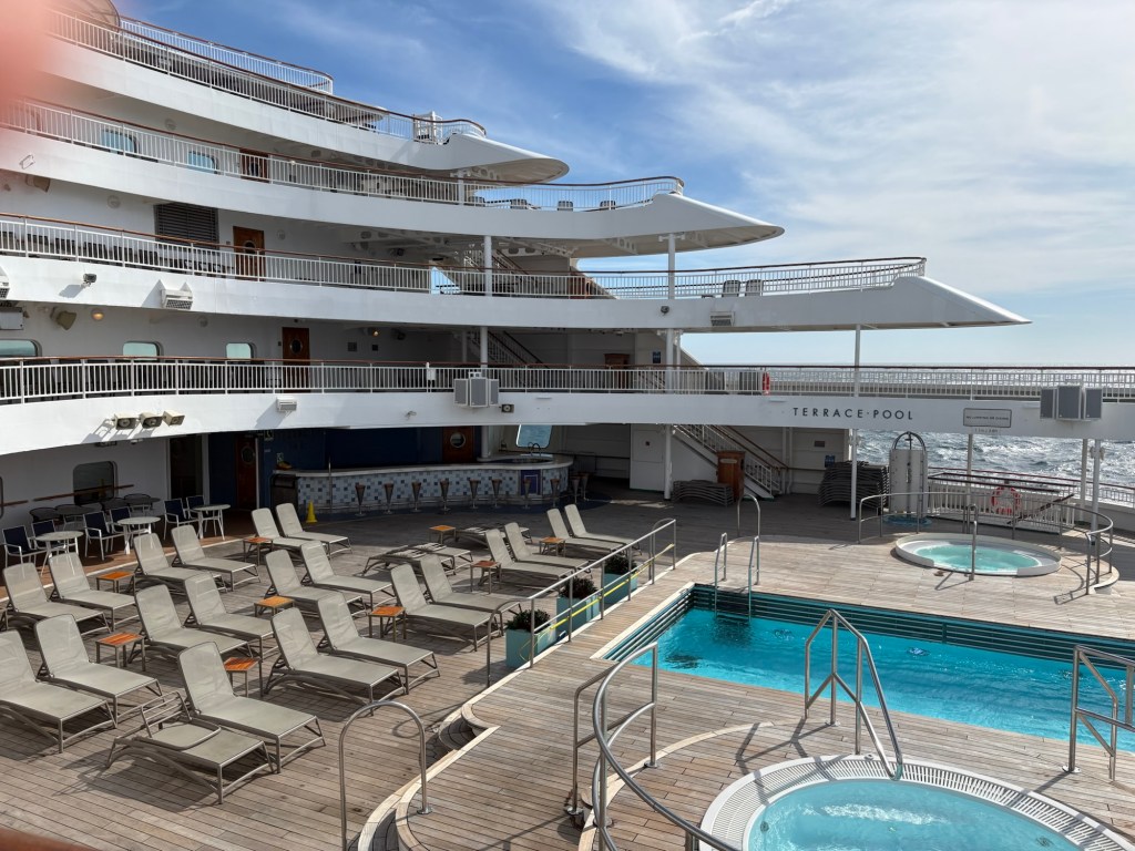 Keith was off for his final podiatry session, so I took the opportunity to do a final walk around the ship, It was just a perfect afternoon at sea – the day is so so much better than predicted.